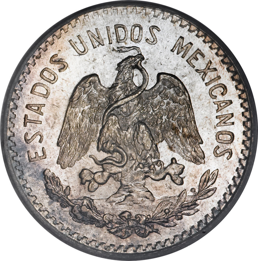 Опис: Герб; орел, що стоїть на кактусі посеред озера, з змією в дзьобі. Підтримується лавровим і дубовим вінком. З написом у верхній частині.