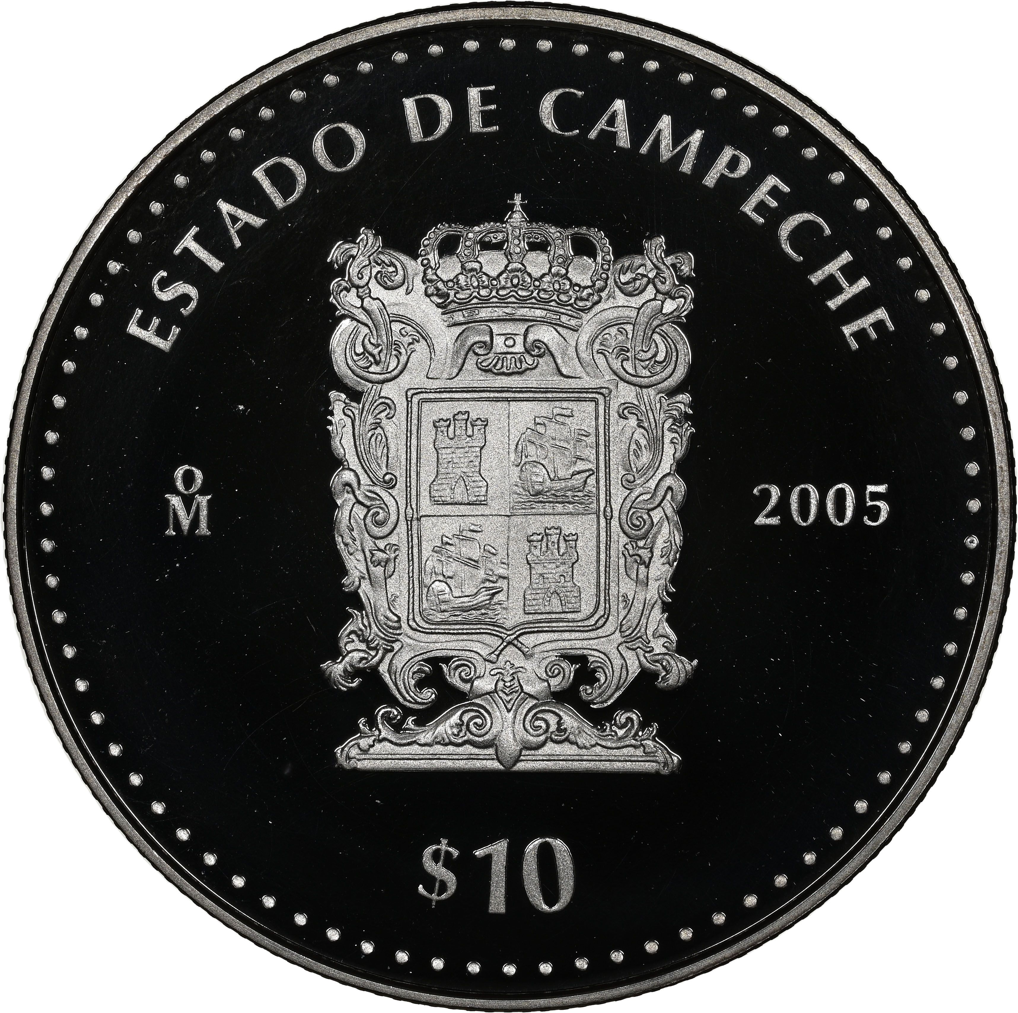 10 песо (Кампече — срібна пробна монета) 2005 – 2005 Мексика