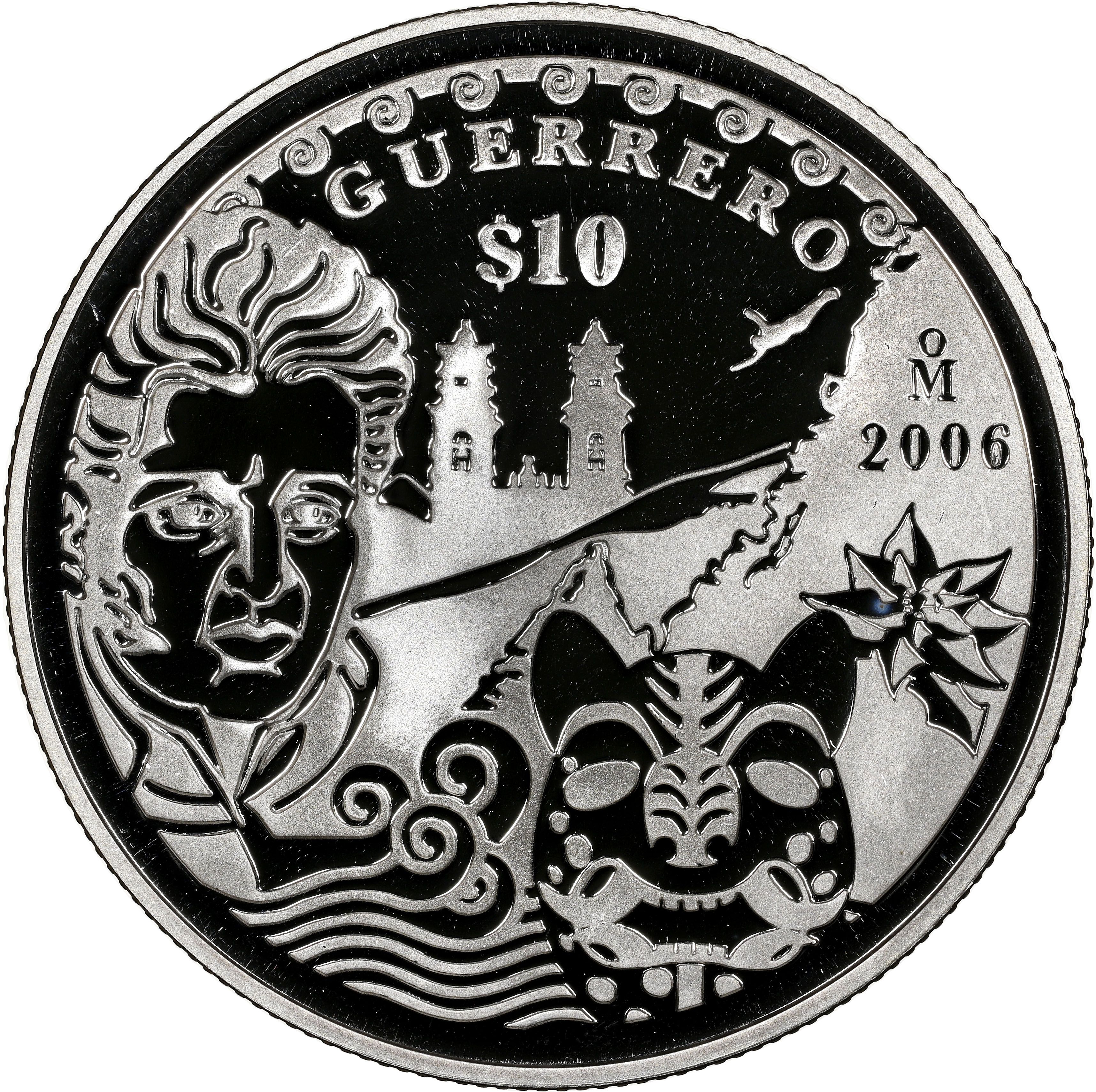 10 песо (Герреро — срібна монета пробного випуску)