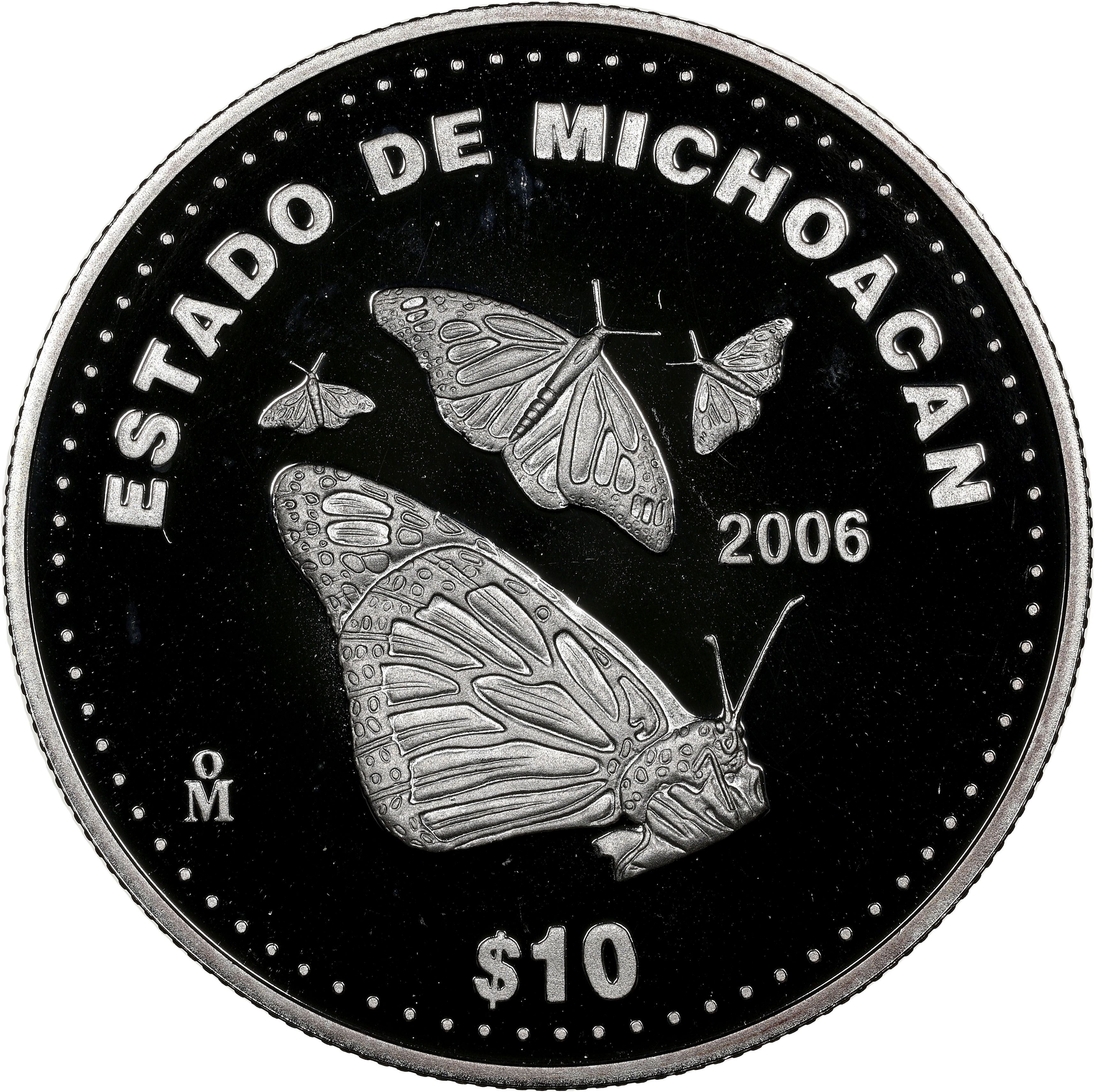 Назва: 10 песо (Мічоакан — срібна монета пробного випуску)