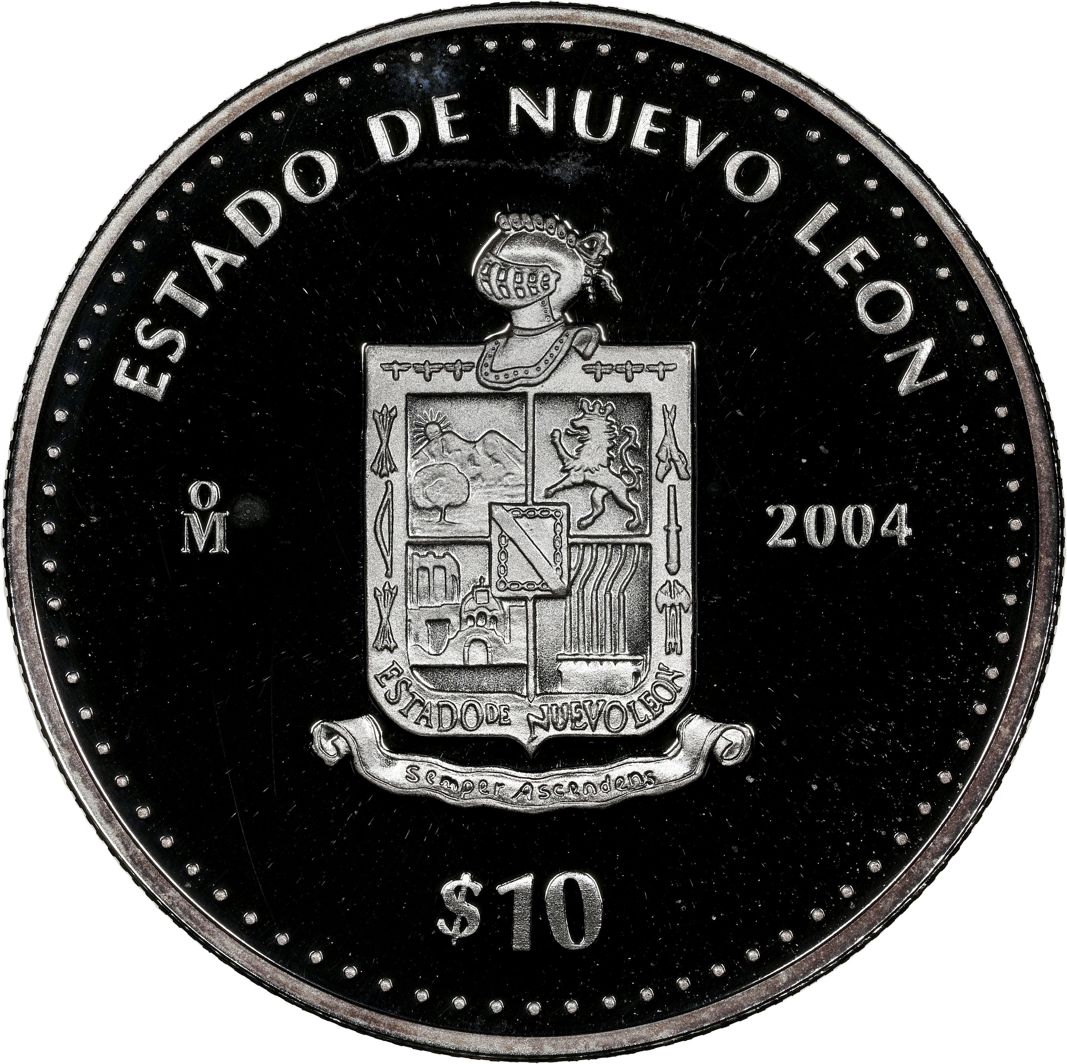 10 песо (Нуево-Леон — срібна пробна монета) 2004 – 2004 Мексика