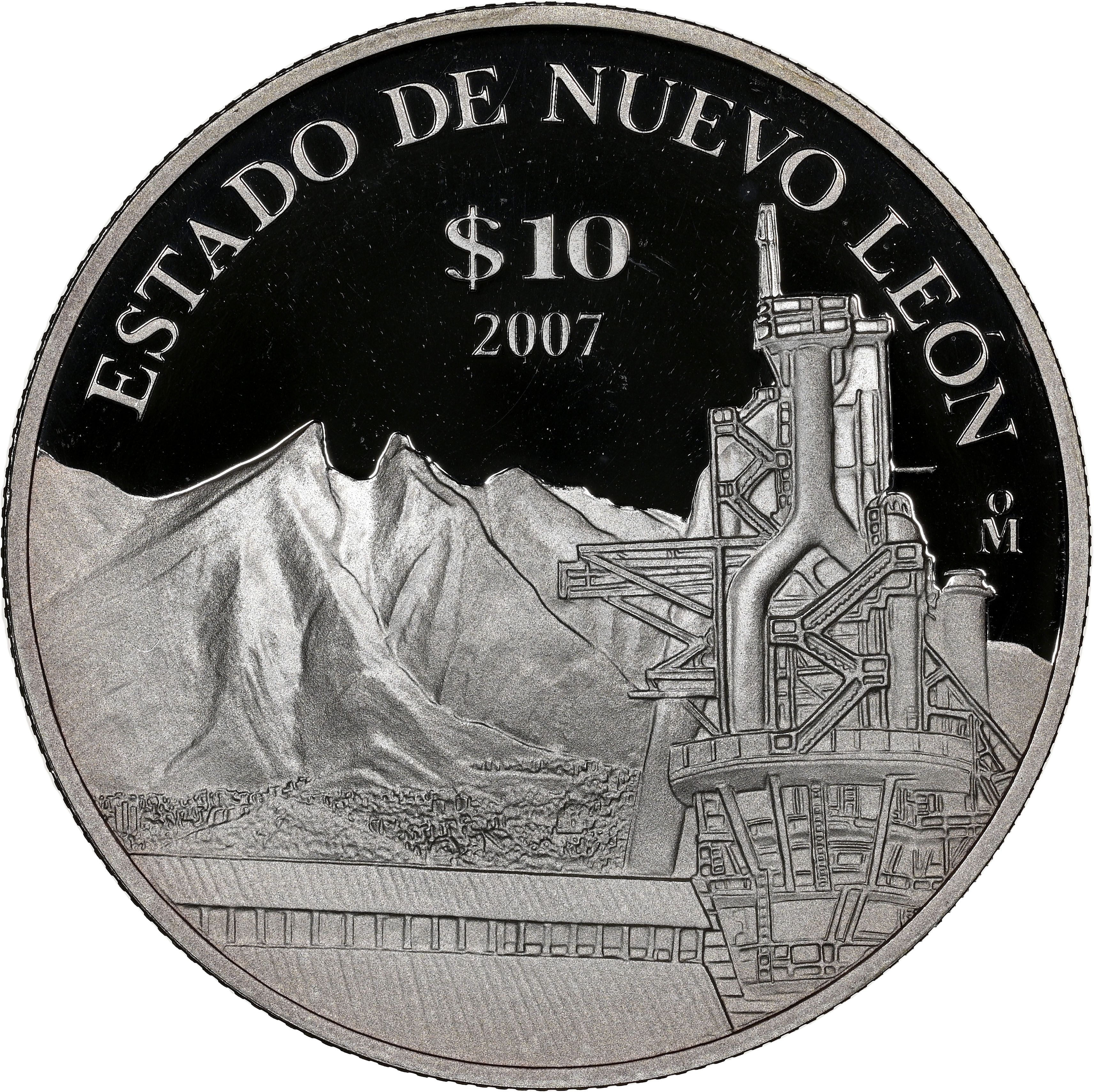 Назва: 10 песо (Нуево-Леон — срібна монета пробного карбування)