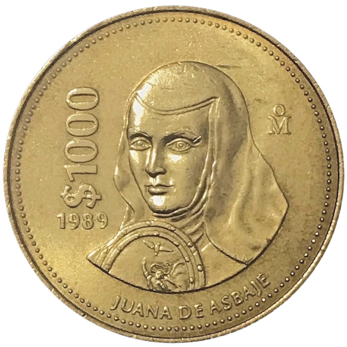 Опис: Портрет Сор Хуани Інес де ла Крус із номіналом ліворуч і знаком монетного двору праворуч.