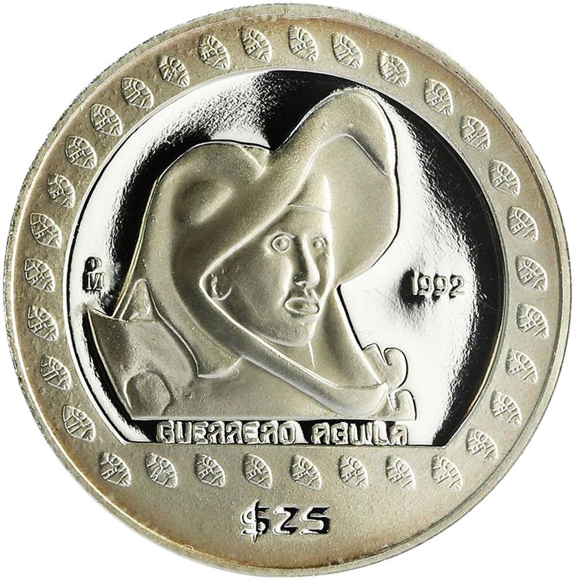 25 песо (Guerrero Aguila — 1/4 унції срібного злитка) 1992 – 1992 Мексика