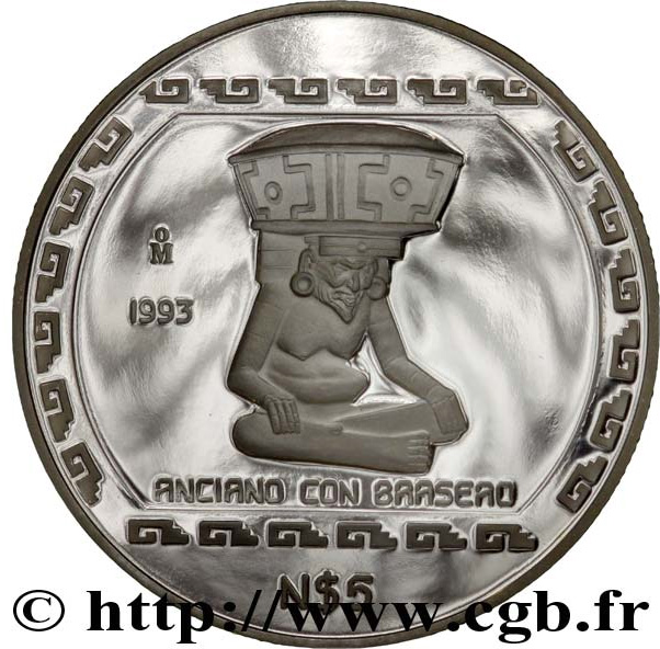 5 нових песо (Anciano Con Brasero — 1 унція срібла) 1993 – 1993 Мексика