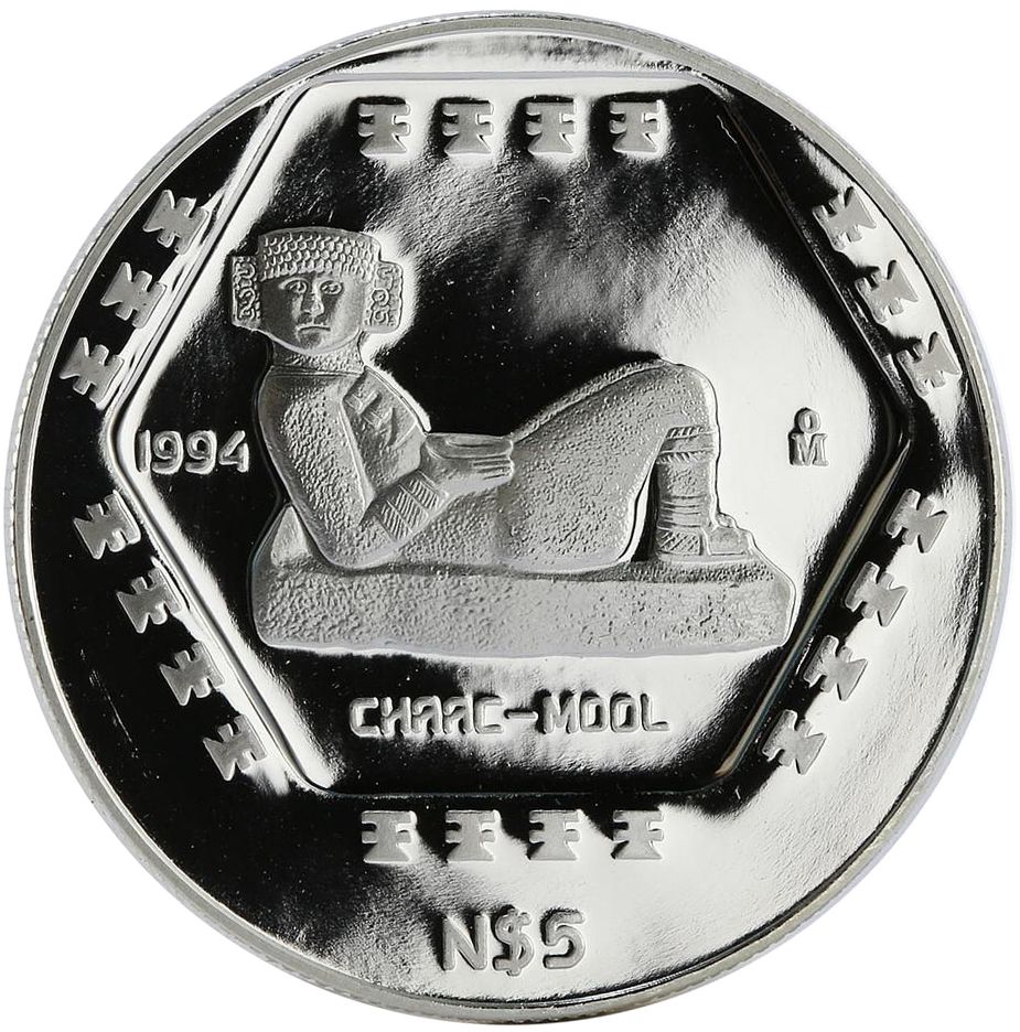 5 нових песо (Chaac Mool — 1 унція срібла) 1994 – 1994 Мексика