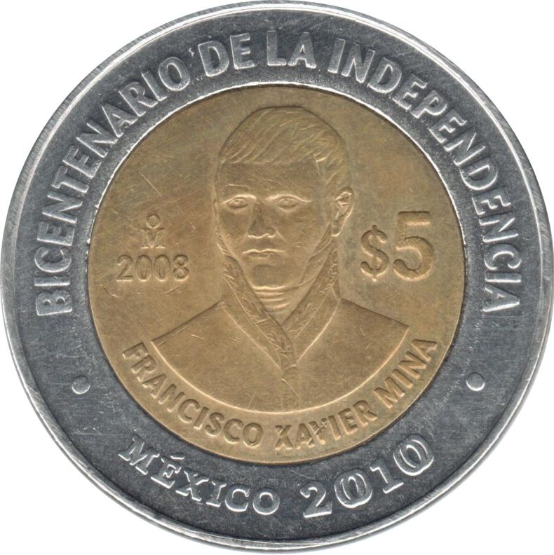 5 песо (Франсіско Ксав'єр Міна) 2008 – 2008 Мексика