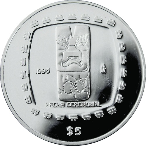 5 песо (церемоніальна монета «Хача» — 1 унція срібла) 1996 – 1998 Мексика