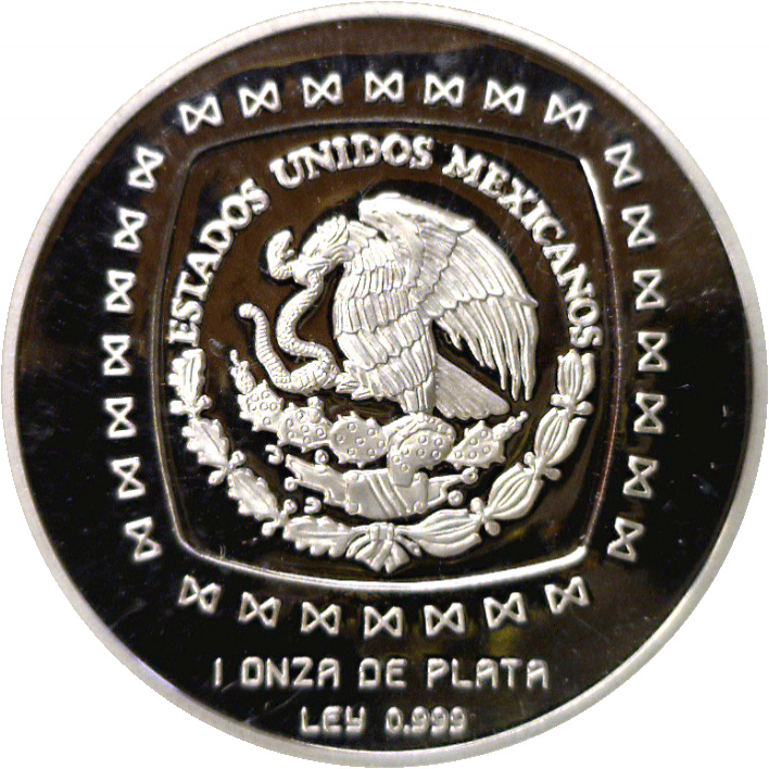 5 песо (Hombre Jaguar — 1 унція срібного злитка) 1996 – 1998 Мексика