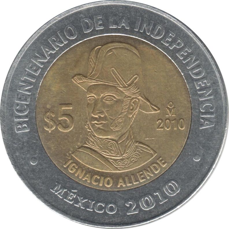 5 песо (Ігнасіо Альєнде) 2010 – 2010 Мексика