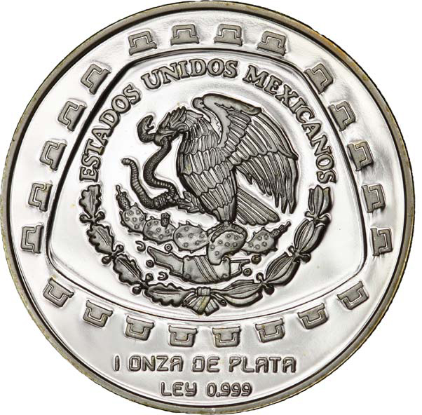 Опис: Тольтекське різьблення ягуара всередині трапецієподібної форми. З датою, монетним двором та темою всередині. З номіналом поза формою.