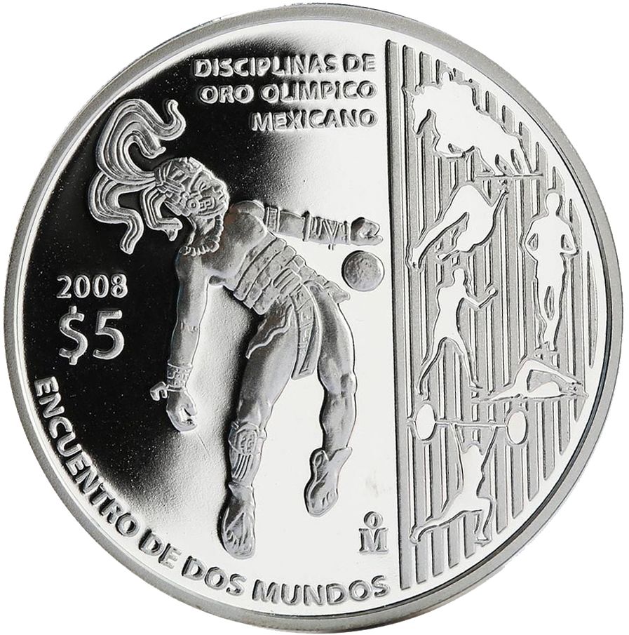 Опис: Основним мотивом є гравець в пелоту зліва. Справа — олімпійські дисципліни, в яких Мексика завоювала золоті медалі. З легендою, роком, номіналом та монетним двором.