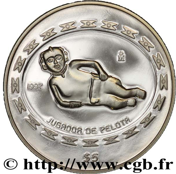 5 песо (Jugador de Pelota — 1 унція срібла) 1997 – 1998 Мексика