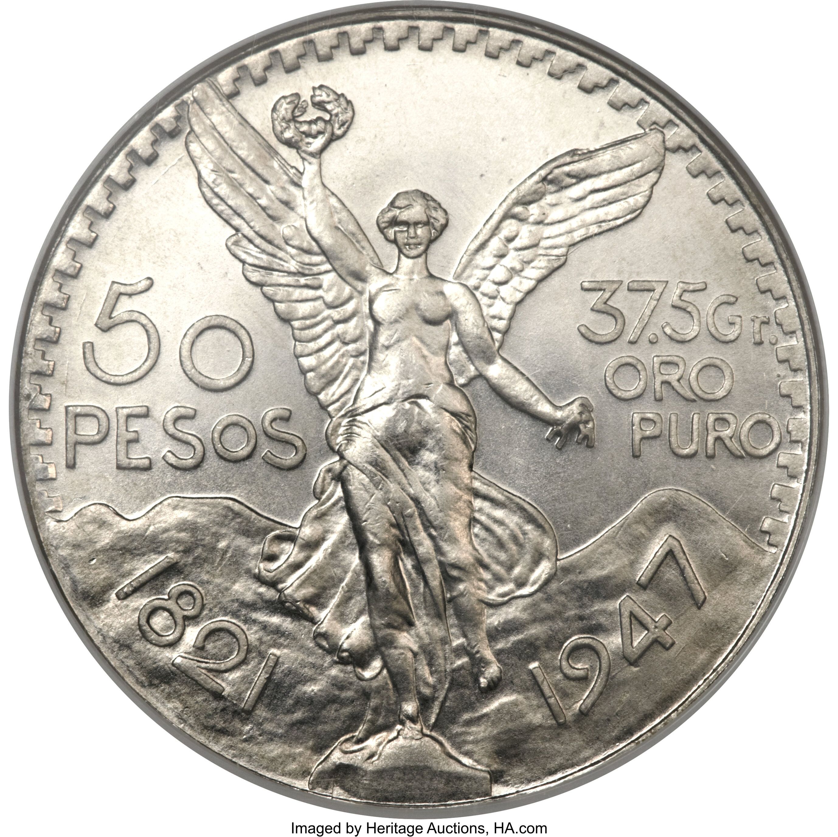 50 песо «Centenario» (Незалежність — Metcalf Restrike — Платина) 1947 – 1947 Мексика
