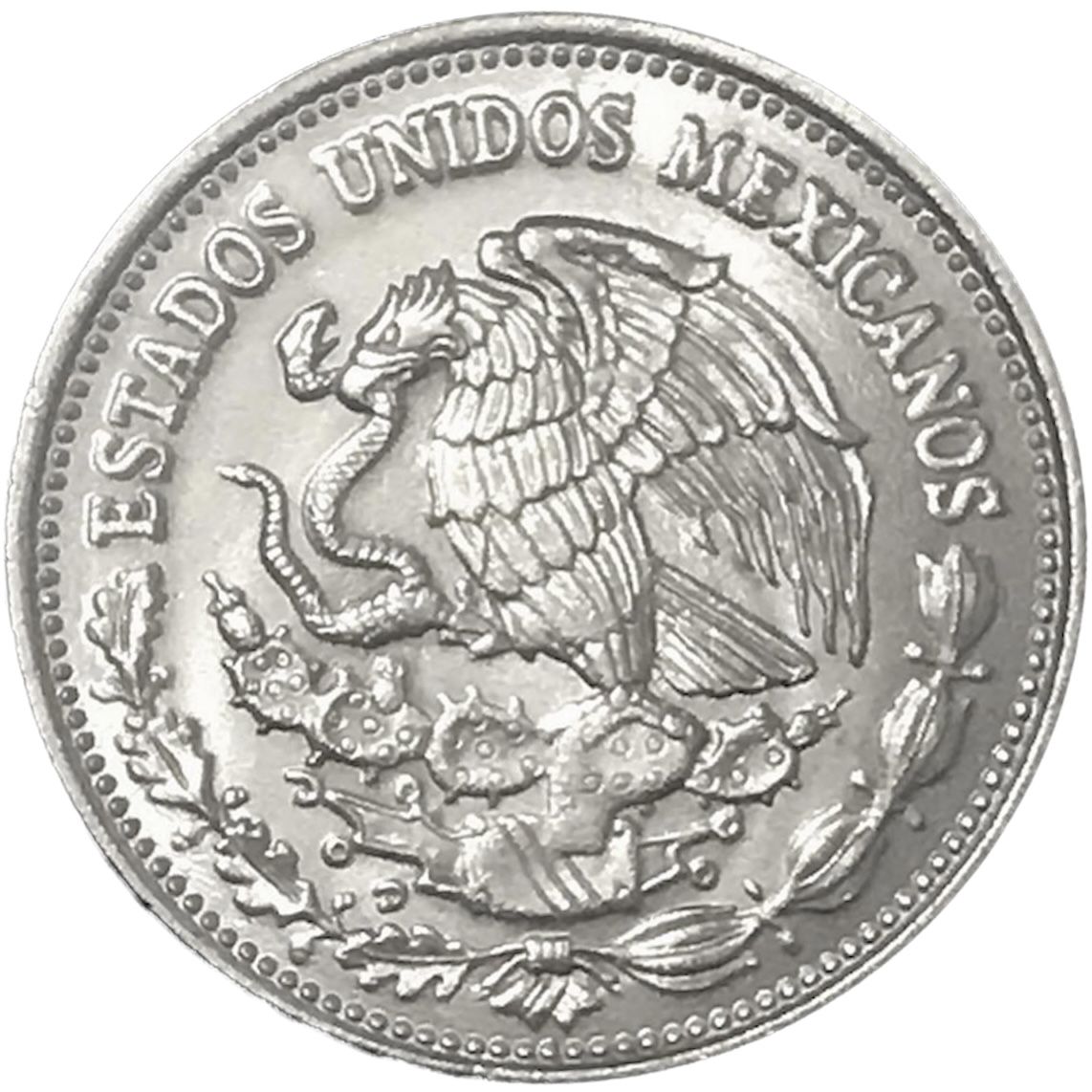 Опис: Державний герб Мексики (мексиканський золотий орел, що сидить на кактусі опунції та пожирає змію, над півколом з дубового та лаврового листя, а також напис, що утворює верхнє півколо).