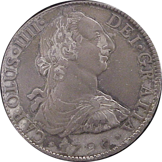 8 реалів — Карл IV (цифра IIII, портрет Карла III) 1790 – 1790 Мексика