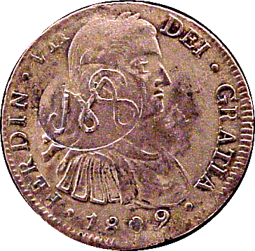 8 реалів — Фердинанд VII (MS — монети з королівським контрмаркуванням) 1809 – 1811 Мексика