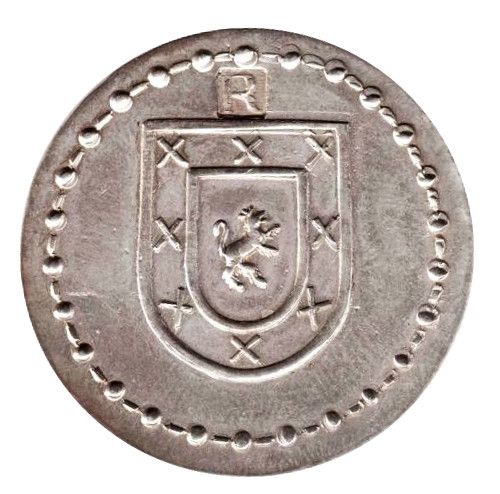 Опис: Щит із 8 зірками та левом всередині. А над ним — авторизація монетного двору у вигляді штампа. Все оточене ланцюжком із крапок.