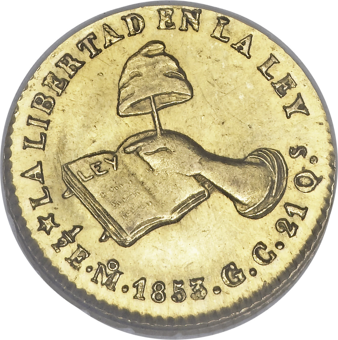 Опис: Рукописний текст на книзі Закону, з капелюхом Свободи на кінці пера. З легендою вгорі та номіналом, монетним двором, датою, ініціалами пробірника та пробою в каратах внизу.