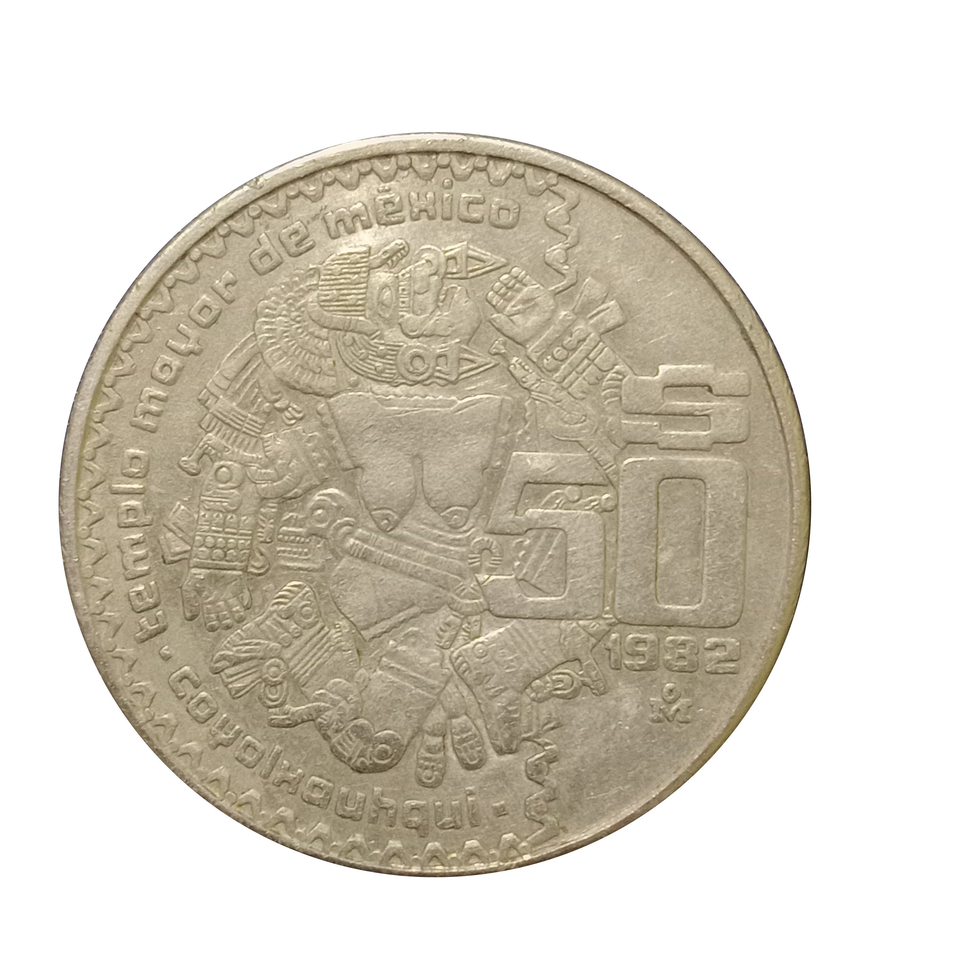 Опис: Номінал праворуч від зображення богині Койолксаукі, виявлений у 1978 році на кам'яному диску діаметром 3,25 м у Мехіко.