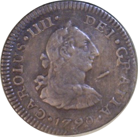Опис: Броньований бюст Карлоса III, що дивиться вправо. З легендою навколо нього та датою внизу.