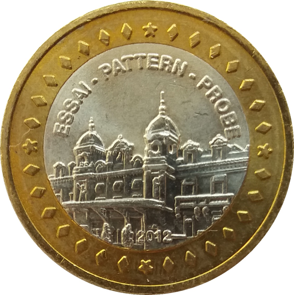 Метал: Біметалева: мідно-нікелева середина в латунному кільці