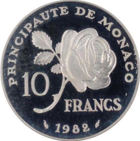 10 франків — Реньє III (принцеса Грейс; Piedfort) 1982 – 1982 Монако