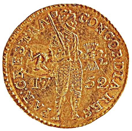 Назва: 3000 реалів — Жозе I (контрмарка MR над «1 дукат, Голландія, 1752»)