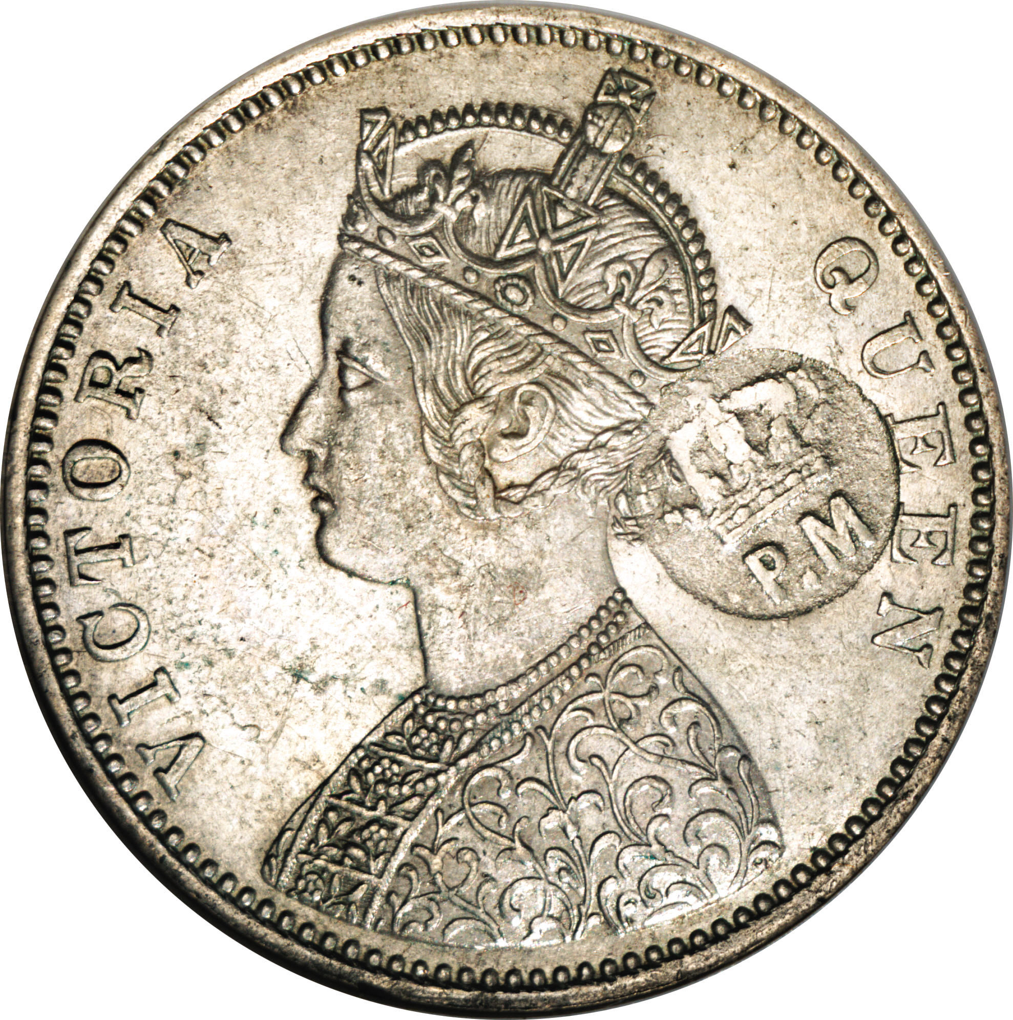 Назва: 450 реалів — Луїш I (контрмарка «Crowned PM» над 1 рупією /Вікторія, Індія)