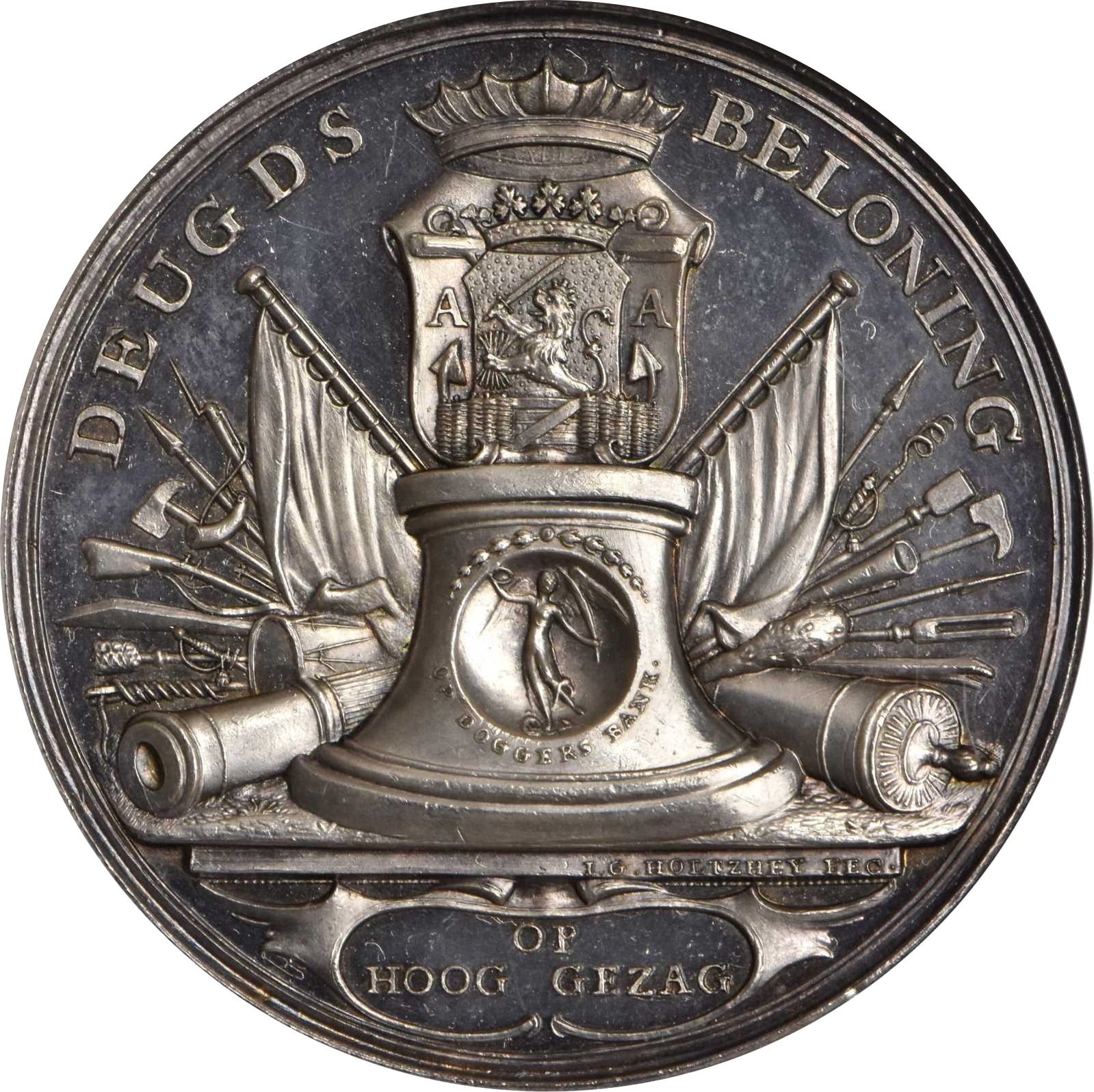 Опис: Урна на вівтарі, герб зліва від неї та корабель праворуч.