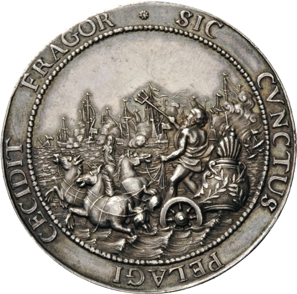 Опис: Нептун, що мчить на своїй колісниці по морю, щоб зупинити морську битву.