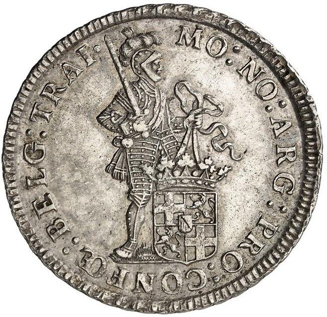 Опис: Коронований герб Об'єднаних провінцій розділяє дату. Малий герб Утрехта над короною.