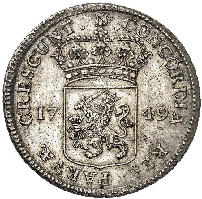 1 срібний дукат (дата на реверсі, квіточний край) 1748 – 1763 Утрехт, провінція