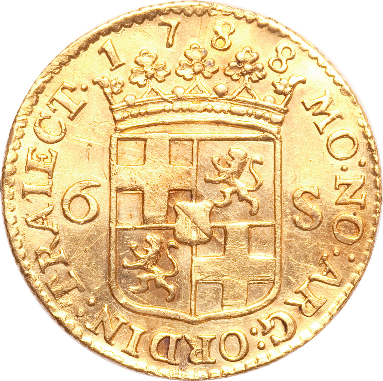 6 стіверів «Scheepjesschelling» (золото; зразок вагою 2 дукати) 1740 – 1794 Утрехт, провінція