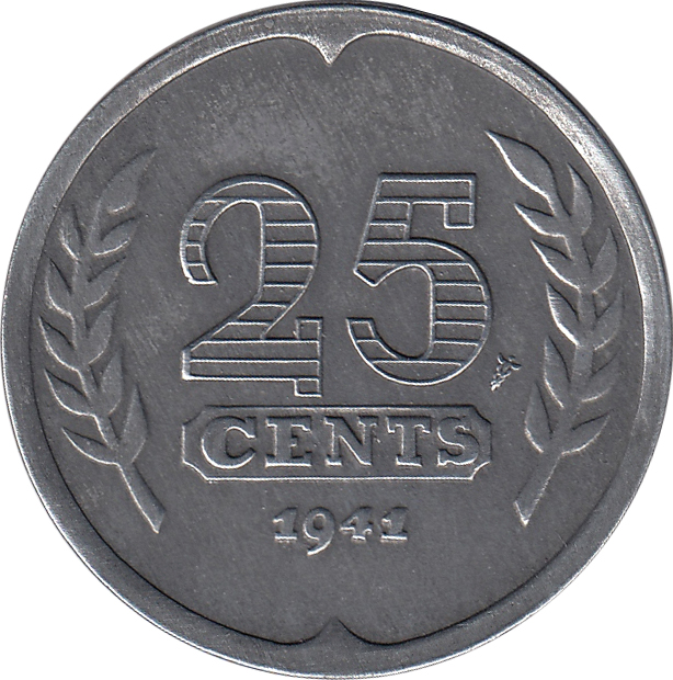 25 центів — німецька окупація 1941 – 1943 Нідерланди