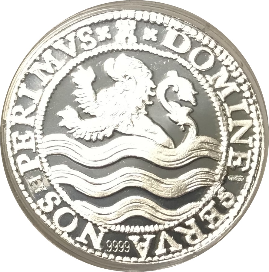 Опис: Гербовий лев, що піднімається з хвиль. Знак монетного двору та знак майстра монетного двору.