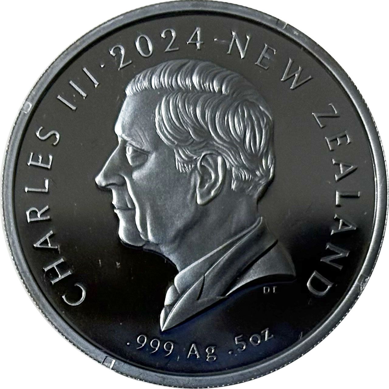 1 долар — Карл III (1-й портрет — заповідник «Вайрарапа Дарк Скай»; 0,5 унції срібла, проба) 2024 – 2024 Нова Зеландія