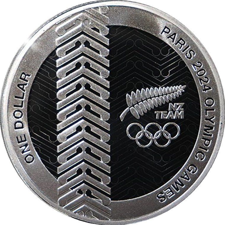 1 долар — Карл III (повноформатний портрет — Олімпійські ігри в Парижі; срібний пробний зразок) 2024 – 2024 Нова Зеландія
