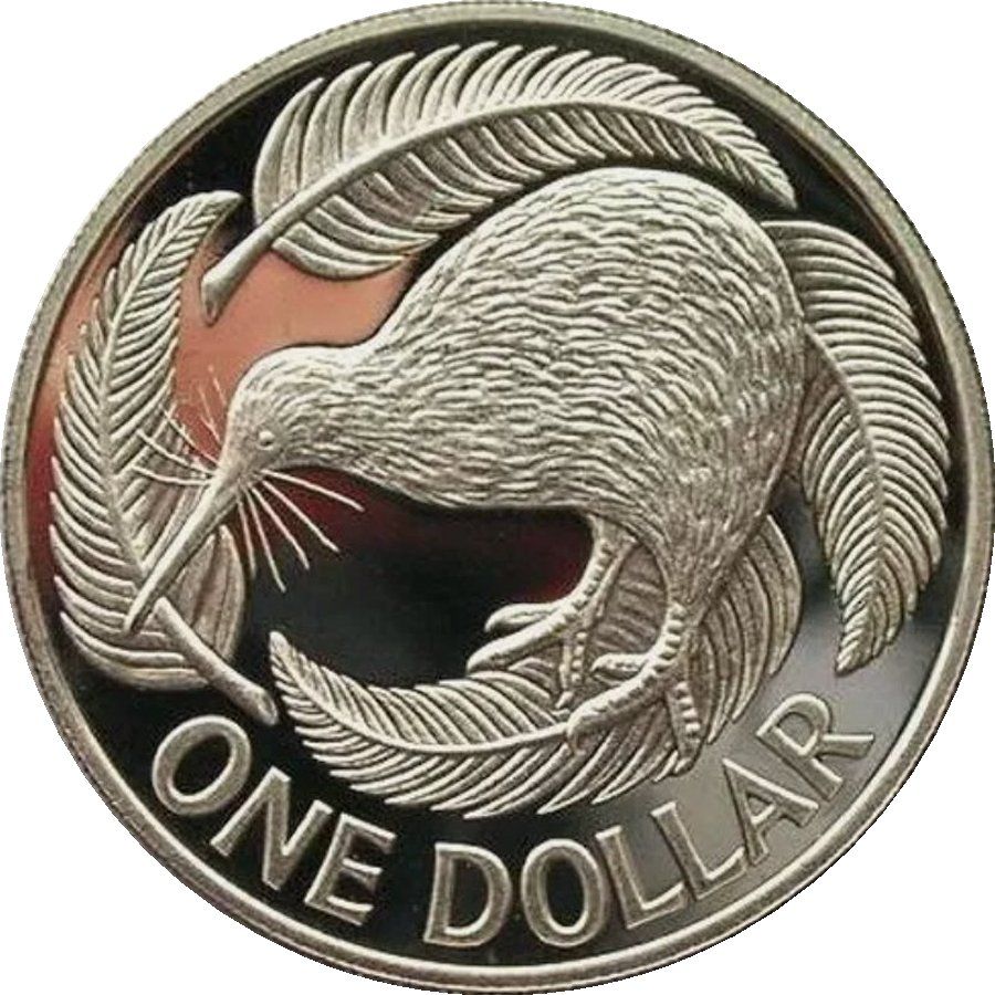 1 долар — Єлизавета II (3-й портрет; срібний п'єдфорт) 1992 – 1992 Нова Зеландія