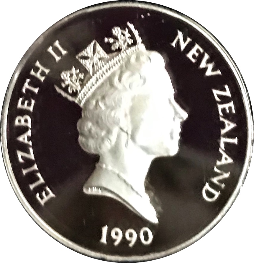 1 долар — Єлизавета II (3-й портрет; срібний пробний) 1990 – 1990 Нова Зеландія