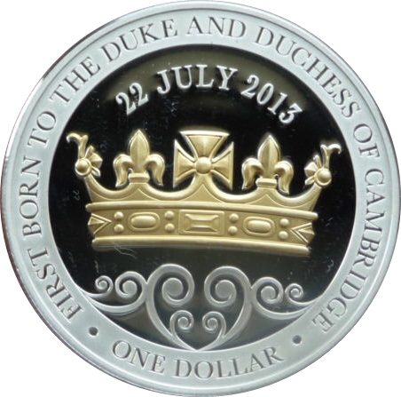 1 долар — Єлизавета II (4-й портрет; народження принца Джорджа) 2013 – 2013 Нова Зеландія