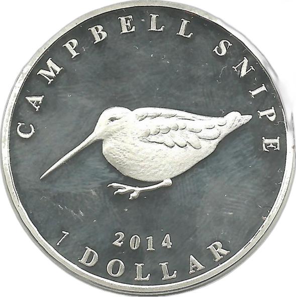 1 долар — Єлизавета II (4-й портрет — острів Кемпбелл) 2014 – 2014 Нова Зеландія