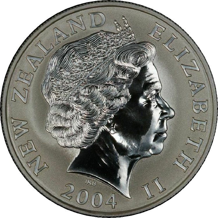 1 долар — Єлизавета II (4-й портрет; малий плямистий ківі) 2004 – 2004 Нова Зеландія