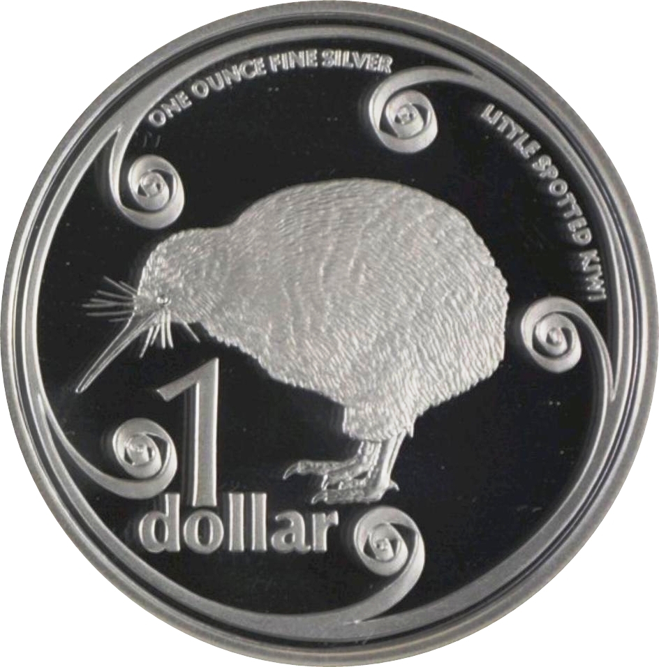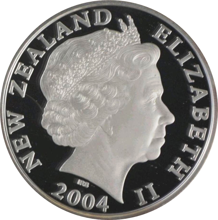 1 долар — Єлизавета II (4-й портрет; малий плямистий ківі, срібний пробний) 2004 – 2004 Нова Зеландія