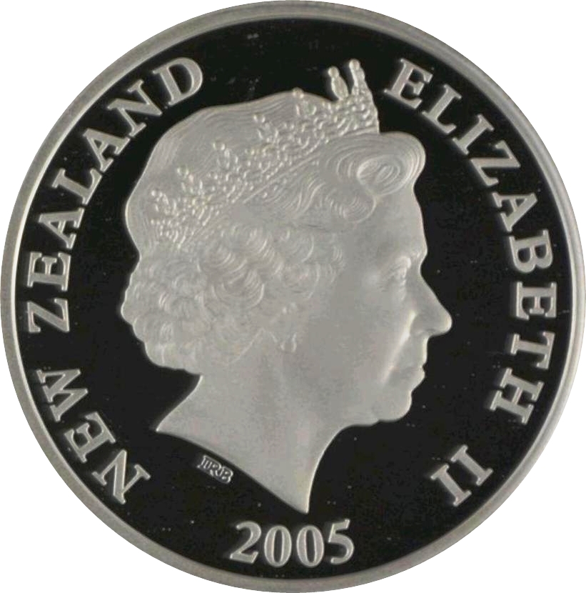 1 долар — Єлизавета II (4-й портрет; Rowi Kiwi, срібна проба) 2005 – 2005 Нова Зеландія