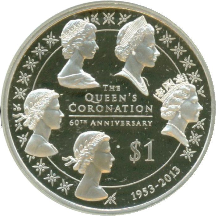 1 долар — Єлизавета II (4-й портрет; 60-та річниця коронації королеви) 2013 – 2013 Нова Зеландія