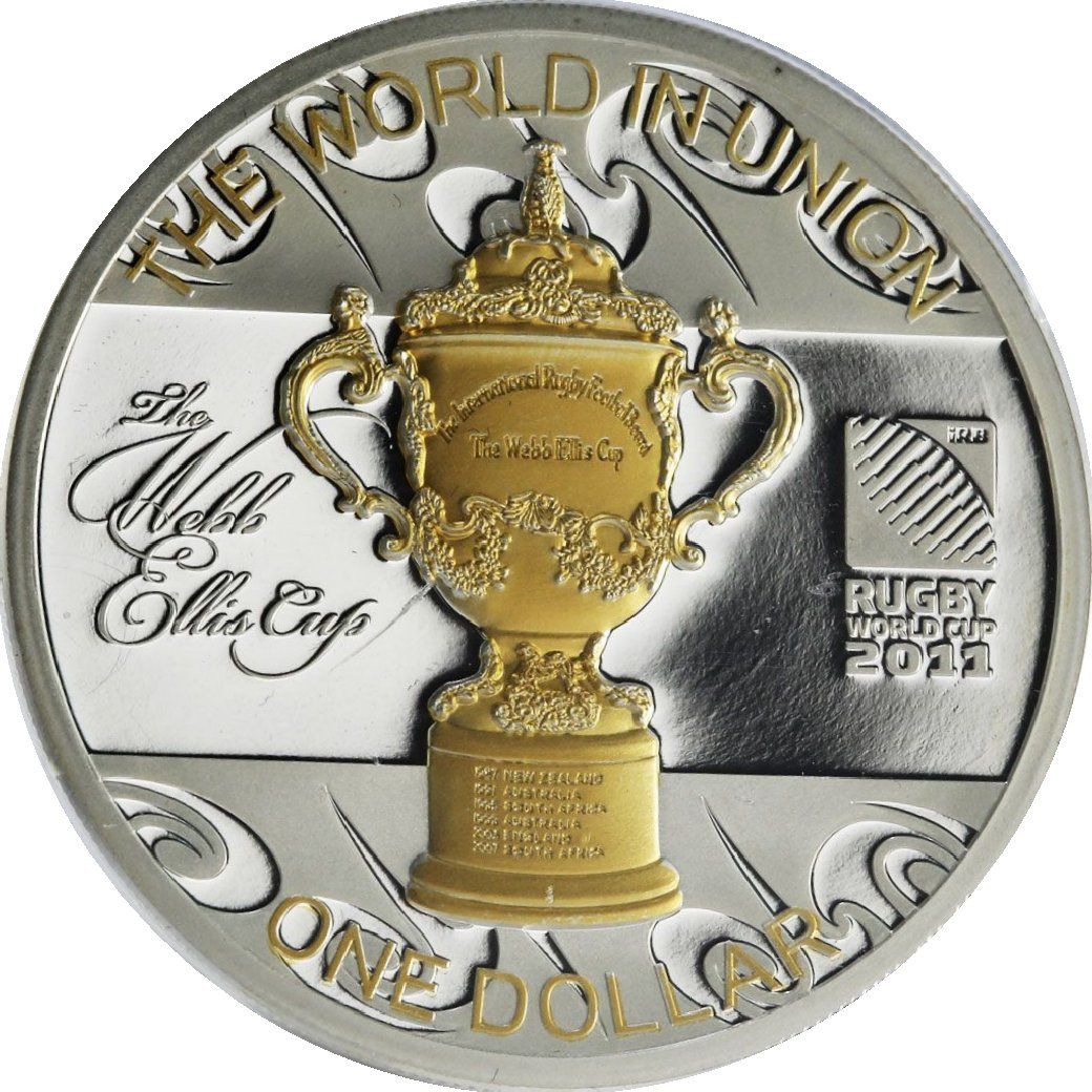 1 долар — Єлизавета II (4-й портрет; Кубок Вебба Елліса) 2011 – 2011 Нова Зеландія
