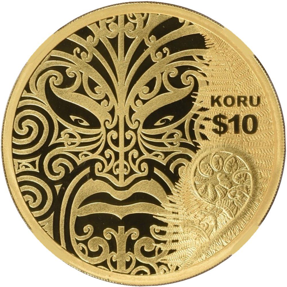 Назва: 10 Dollars - Elizabeth II (4th Portrait; Maori Art - Koru; Gold Proof)