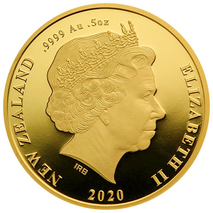 10 доларів — Єлизавета II (4-й портрет — Мауї та перший собака I: Мауї / золото) 2020 – 2020 Нова Зеландія