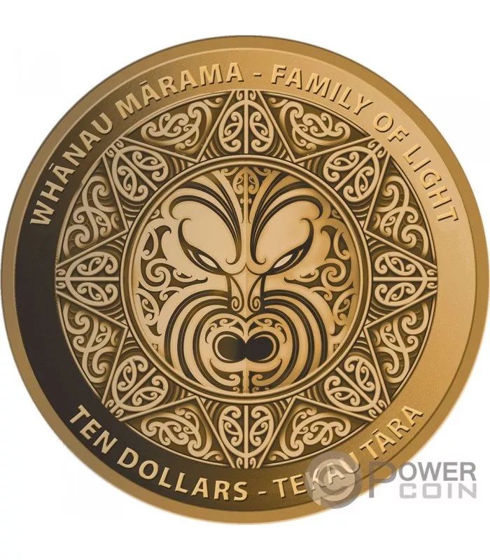 Опис: Зображення Сонця з детальними ілюстраціями, що уособлюють це небесне тіло у стилі різьблення маорі.